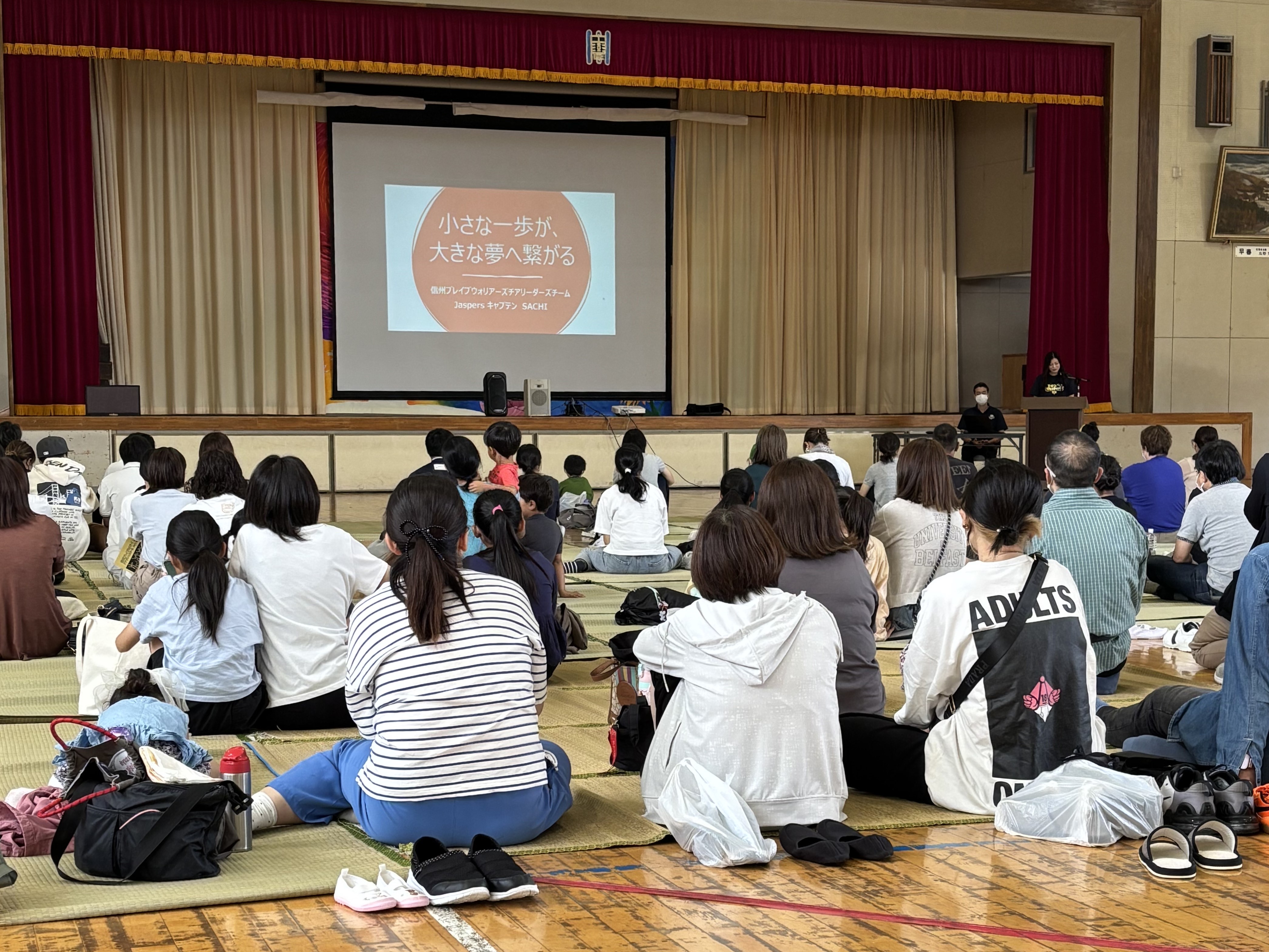 チアリーディングチームJaspersのキャプテンSACHI様による「小さな一歩が大きな夢へ繋がる」というテーマで講演会を行っていただきました。